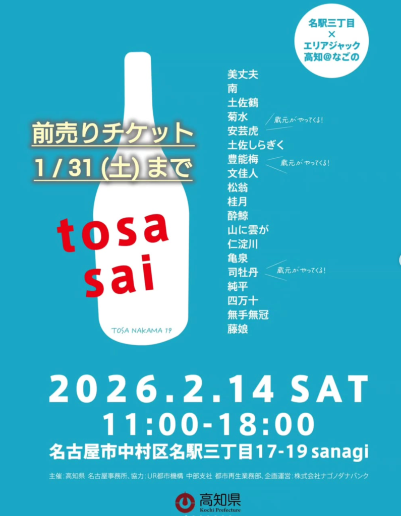 名古屋駅から徒歩圏内の名駅3丁目、UR所有地で開催される「tosasai」は、高知県の食文化を体験できるイベントです。高知県内の19酒蔵の日本酒に加え、四万十ポークカレーきしめんや土佐清水の宗田鰹節だしスープ、北川村のホットゆずなどの名物グルメも堪能できます。